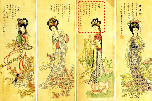 한편 양귀비는 월(越)나라(춘추전국시대 양쯔강 하류에 있던 나라) 왕 구천(勾踐, BC 520~464 추정)의 참모 범려范蠡, 생몰 미상)의 전략에 따라 오(吳)나라 부차(夫差,BC ?~BC 473)의 여인이 된 서시(西施, 생몰미상, BC 5세기), 한나라 원제(劉奭,고종-高宗 효원황제, BC75~BC43)의 궁녀로 흉노에 시집간 왕소군(王昭君, 생몰 미상), 삼국지연의의 가공인물로 여포(呂布, 160 이전~199)와 밀통한 동탁(董卓, 139~192 )의 시녀 초선(혹은 초나라 때 인물로 항우의 첩 우미인(虞美人,?~202,이름은 우희-虞姬)와 함께 고대 중국 4대 미녀 중 1명으로 꼽힌다.